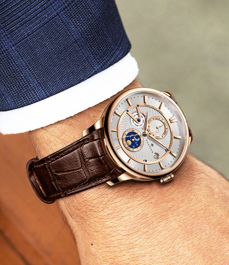 ♪ Ngoài ra, với sự kết hợp của bộ máy Automatic cùng dây da sang trọng đã biến PONIGER P813-1 thành một tổng thể tròn trịa, đẳng cấp và thời thượng như chính phong cách của quý ông ngoài 25.