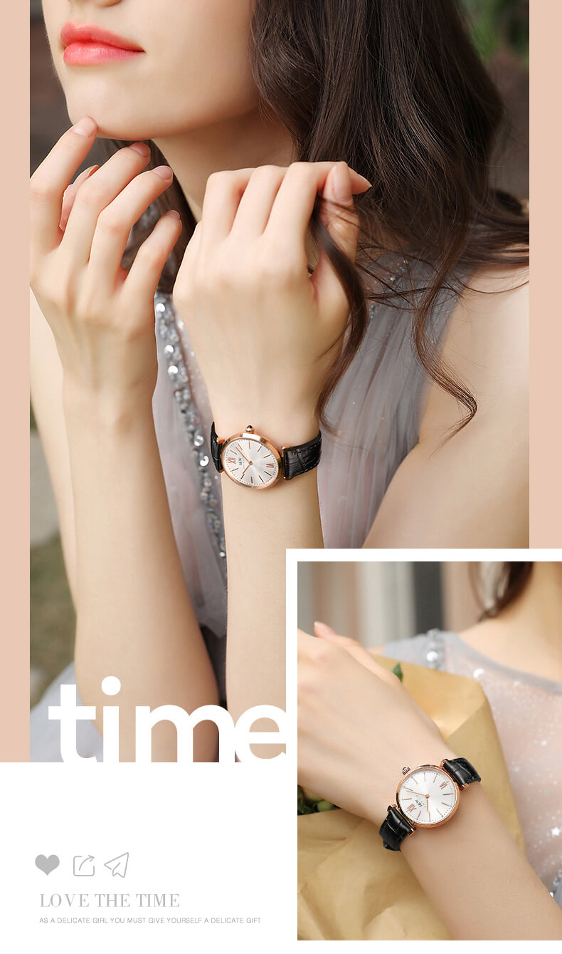 Mang trên mình vẻ ngoài mượt mà và phong cách với dây da màu pastel mờ. Chiếc đồng hồ còn có thêm màu đơn sắc sành điệu và có khả năng chống nước để bạn