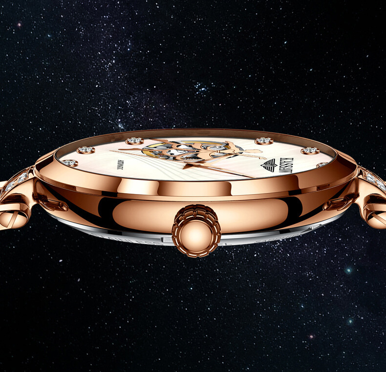 +Chiếc đồng hồ cơ Kassaw Lady Rose chắc chắn sẽ làm hài lòng các cô nàng cá tính, thanh lịch và rất biết "chơi" đồng hồ! +Thiết kế hở tim phá cách kết hợp khéo