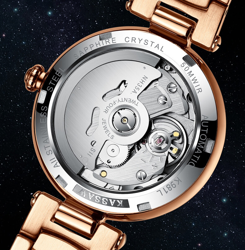 Đồng hồ nữ chính hãng kassaw Thụy Sỹ Thiết kế hiện đại,sang trọng dành cho phái nữ Thời gian trữ cót lâu lên đến 40h Chống nước 5ATM, Kính sapphire Toàn bộ máy được làm