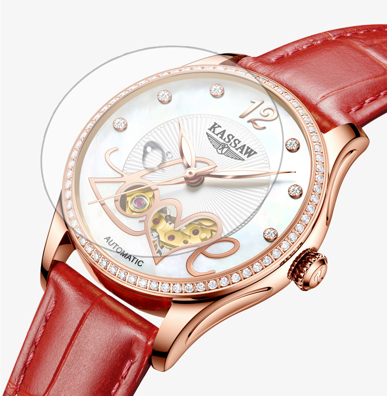 +Chiếc đồng hồ cơ Kassaw Lady Rose chắc chắn sẽ làm hài lòng các cô nàng cá tính, thanh lịch và rất biết "chơi" đồng hồ! +Thiết kế hở tim phá cách kết hợp khéo
