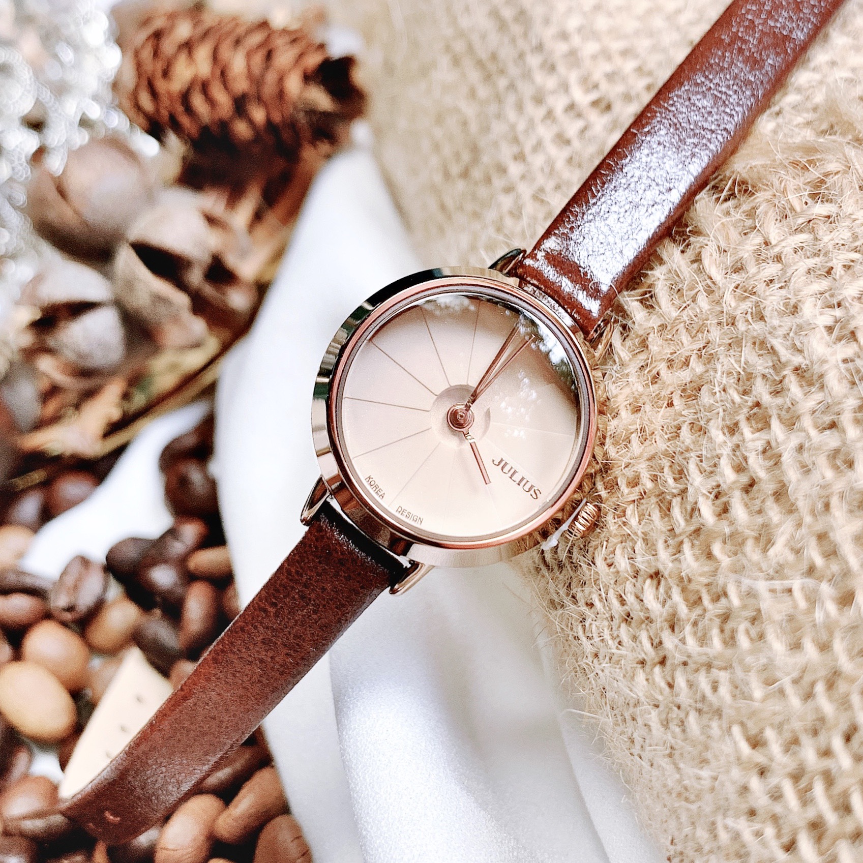 Đồng Hồ Nữ Julius Hàn Quốc JA979 Mặt Tròn Cá TÍnh Dây Da Màu Nâu