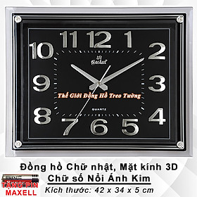 ✨Đồng Hồ Treo Tường KIM TRÔI EASTAR Chữ Nhật Mặt Đen – Mặt Kính 3D – Bộ Số Nổi Ánh Kim Bạc – Kèm Pin Maxell