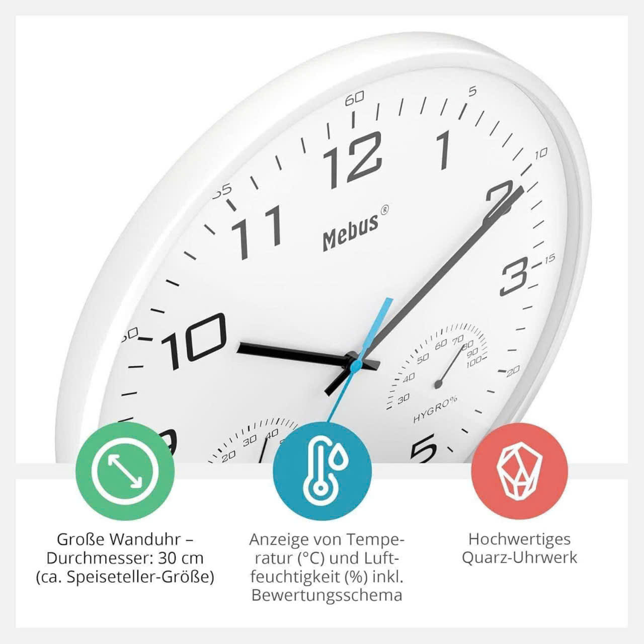 Đồng hồ treo tường kèm đo nhiệt độ và độ ẩm Mebus 06992 – hàng Đức