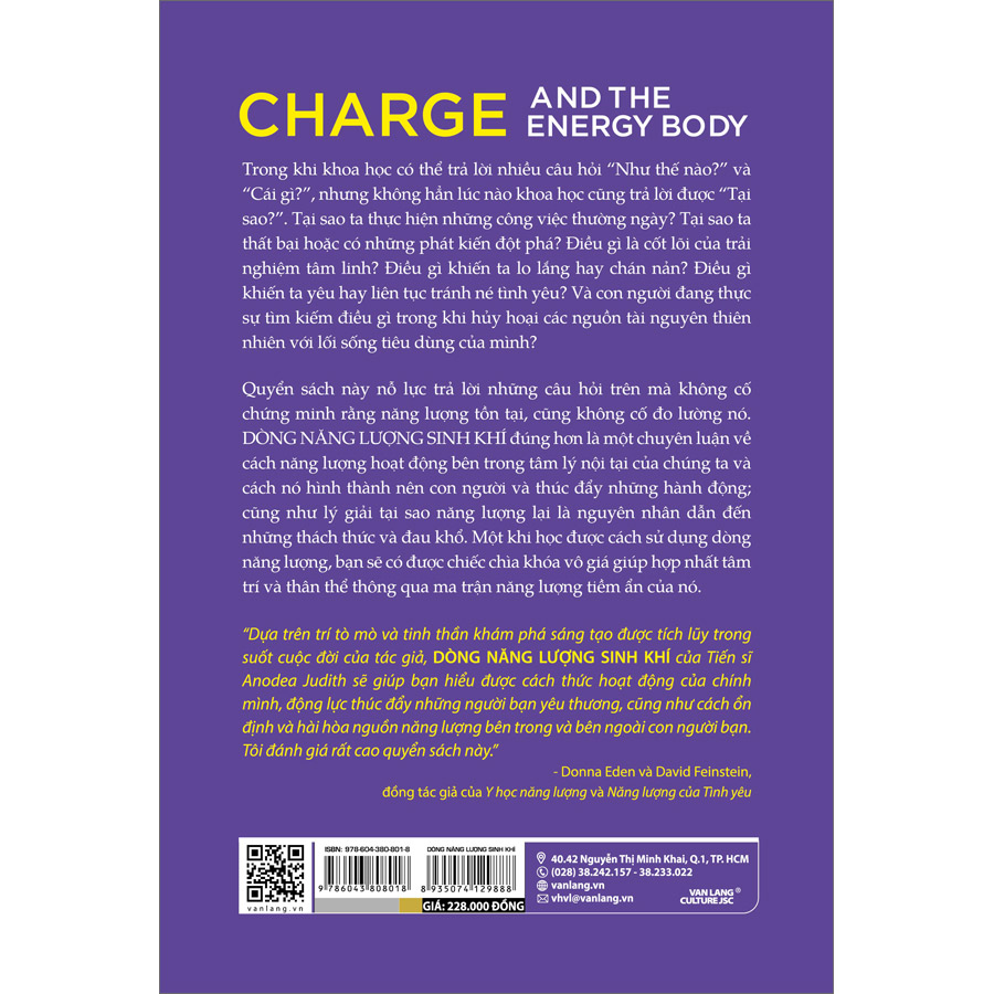 Quyển sách này nỗ lực trả lời những câu hỏi trên mà không cố chứng minh rằng năng lượng tồn tại, cũng không cố đo lường nó. DÒNG NĂNG LƯỢNG SINH KHÍ đúng hơn là một chuyên luận về cách năng lượng hoạt động bên trong tâm lý nội tại của chúng ta và cách nó hình thành nên con người và thúc đẩy những hành động; cũng như lý giải tại sao năng lượng lại là nguyên nhân dẫn đến những thách thức và đau khổ. Một khi học được cách sử dụng dòng năng lượng, bạn sẽ có được chiếc chìa khóa vô giá giúp hợp nhất tâm trí và thân thể thông qua ma trận năng lượng tiềm ẩn của nó. “Dựa trên trí tò mò và tinh thần khám phá sáng tạo được tích lũy trong suốt cuộc đời của tác giả, Dòng năng lượng sinh khí của Tiến sĩ Anodea Judith sẽ giúp bạn hiểu được cách thức hoạt động của chính mình, động lực thúc đẩy những người bạn yêu thương, cũng như cách ổn định và hài hòa nguồn năng lượng bên trong và bên ngoài con người bạn. Tôi đánh giá rất cao quyển sách này.”