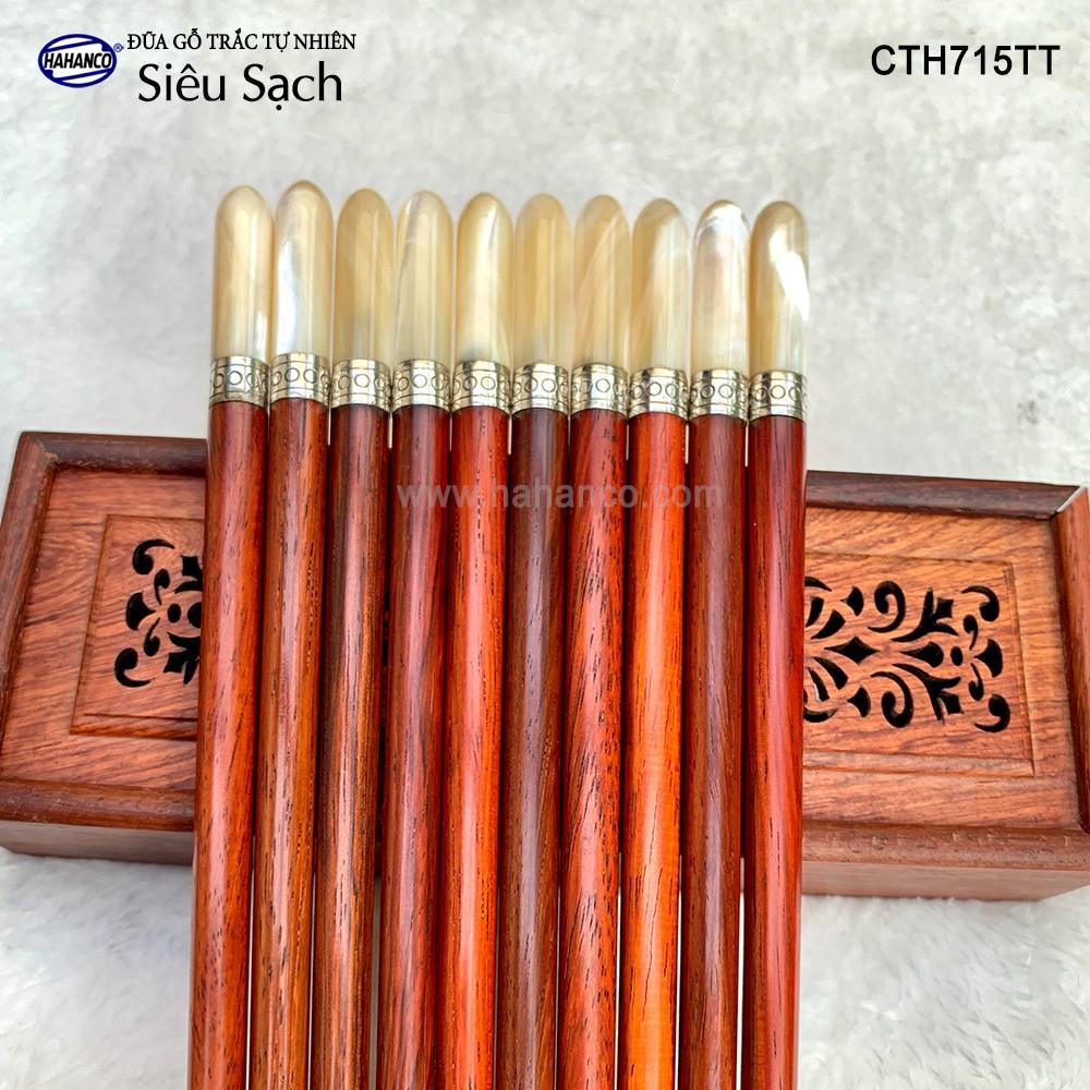 THÔNG TIN SẢN PHẨM Tên sản phẩm: Đũa Gỗ Cẩm Lai Ghép Sừng - thương hiệu Trường Sơn Kích thước đũa: 24 +/- 0.5 Cm Số lượng: 05 Đôi/ Hộp Hoặc 10 Đôi / Hộp