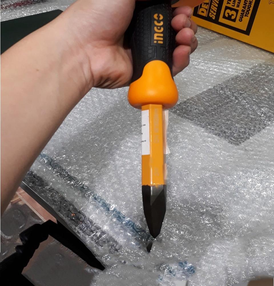 - Xuất xứ: Trung Quốc HCC8141016 Độ rộng đầu đục: 4mm, độ rộng tay cầm: 16mm, Chiều dài: 254mm, Chất lượng giống STANLEY-20/T HCC8141219 Độ rộng đầu đục: 4mm, độ rộng tay cầm: 19mm, Chiều dài: 305mm, Chất lượng giống STANLEY-20/T