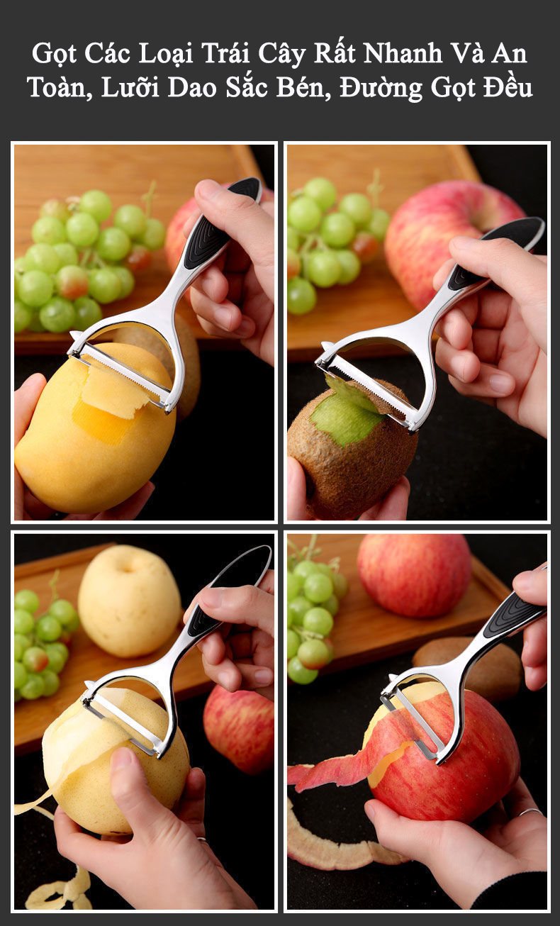 • Dao có tác dụng nạo gọt vỏ củ, quả trái cây siêu nhanh và an toàn, giúp việc chế biến các món ăn của bạn trở nên thật đơn giản và dễ dàng, tiết kiệm thời gian và công sức cho các bạn nội trợ.