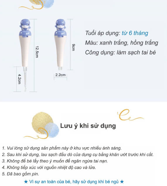 Mua tại Tiktok- Trang bị đèn led với ánh sáng dịu nhẹ, giúp mẹ nhìn rõ bụi bẩn trong tai, bảo vệ ống tai khỏi tổn thương khi không nhìn rõ.