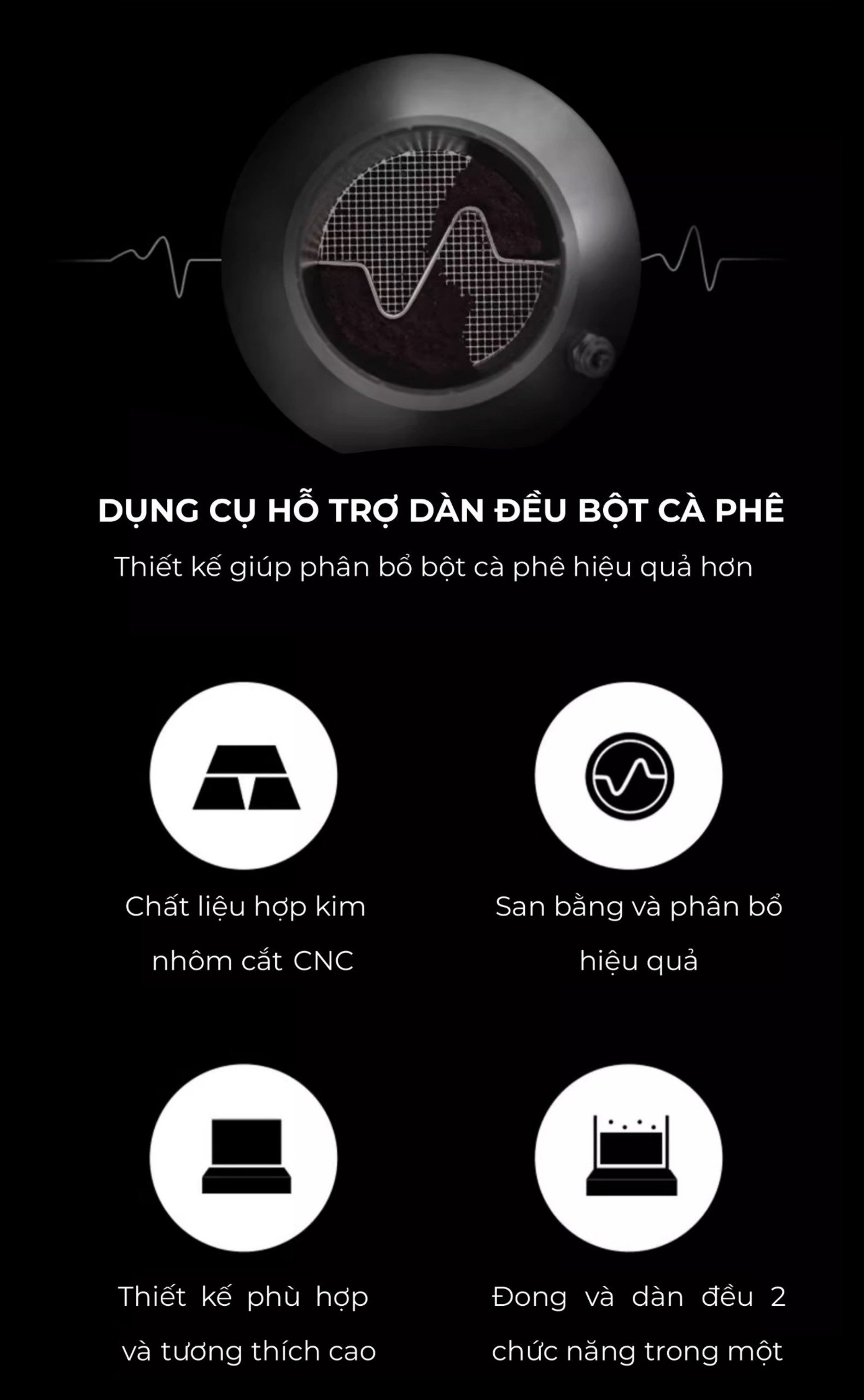 KIM TÁN ĐỀU BỘT CÀ PHÊ ESPRESSO ️Tránh tình trạng vón cục cà phê bên trong basket. ️Chất liệu: Inox 304. Bên cạnh tầm quan trọng không thể thiếu của Tamper và Tamper OCD trong