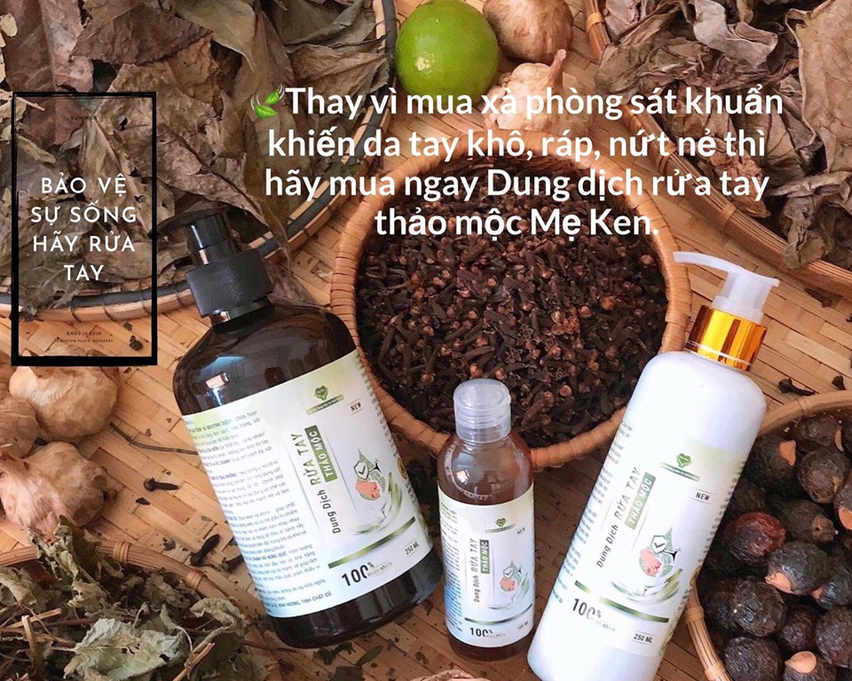 DUNG DỊCH RỬA TAY THẢO MỘC SÁT KHUẨN Nguyên liệu: Tinh dầu tràm, trà xanh, vỏ chanh, bồ hòn, tinh dầu tỏi,tinh chất lá ổi, húng quế, bạc hà sả chanh, lá đa niên, trầu
