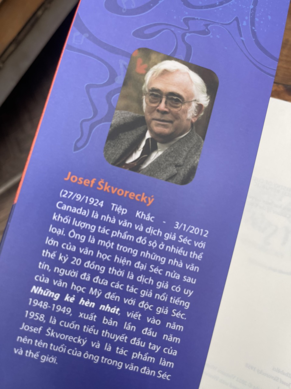 Tác giả: Josef Škvorecký (27/9/1924 Tiệp Khắc – 3/1/2012 Canada) là nhà văn và dịch giả người Séc, với khối lượng tác phẩm đồ sộ. Ông là một trong những nhà văn lớn của văn học hiện đại Séc nửa sau thế kỷ 20 đồng thời là dịch giả có uy tín, người đã đưa các tác giả nổi tiếng của văn học Mỹ đến với độc giả Séc. Ông đã được tặng nhiều giải thưởng văn học trong và ngoài nước: giải thưởng của Hội Nhà văn Tiệp Khắc (1963), giải thưởng Nhà văn Tiệp Khắc (1966), giải Văn học Quốc gia (1999), giải Jaroslav Seifert (2004), giải thưởng của Toàn quyền Canada cho tiểu thuyết hay nhất (1984), giải của Quỹ Echoing Green – New York (1990), Huân chương Nghệ thuật và Văn học của Pháp (1996) Giải thưởng danh giá nhất ông được trao tặng là giải Văn học quốc tế Neustadt năm 1980. Từ năm 2007, Séc có thêm giải thưởng văn học mang tên Josef Škvorecký, trao tặng cho tác giả Séc có sáng tác văn xuôi hay nhất của năm.