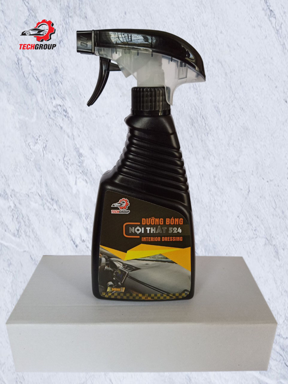 Mua tại TiktokDưỡng bóng nội thất cao cấp Techgroup - 524 là dung dịch silicone hệ nước dùng dưỡng bóng nội thất cao cấp. Phục hồi vẻ đẹp ban đầu cho các bộ phận nội thất xe bằng da, giả da, cao su,… 1. Hướng dẫn sử dụng : Làm sạch chất bẩn trên bề mặt cần lau bóng. Lắc kỹ sản phẩm. Mở vòi phun về [ON] để chọn chế độ phun sương hoặc tia. Phun sản phẩm lên bề mặt rồi lau khô bằng khăn mềm microfiber. 2. Thành phần : Nước, nhũ tương silicon, hương. 3. Sơ Cứu :