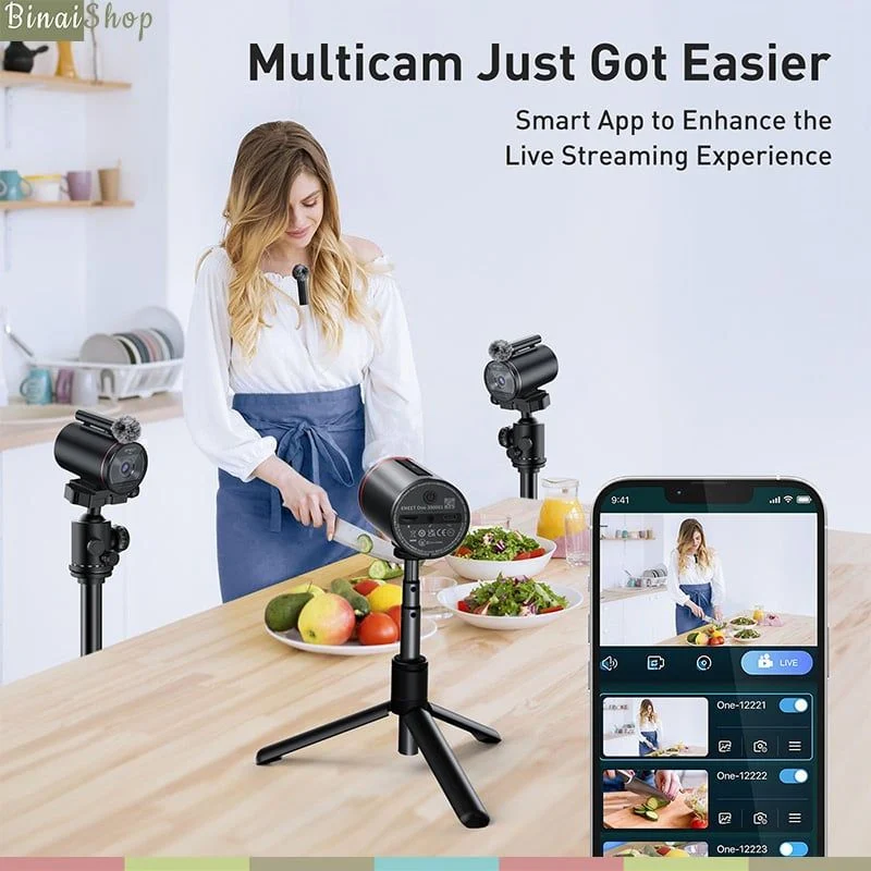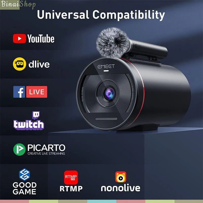 Mua tại Tiktok- Emeet StreamCam One là webcam không dây sử dụng wifi với độ phân giải HD 1080P, ống kính Prime 7 phần, HDR cao, trải nghiệm hình ảnh sắc nét với cảm biến mới của So.ny, một mic tháo rời và hai mic chống ồn tích hợp mang lại giọng nói rõ ràng khi di chuyển thích hợp để livestream hay vlog. Ngoài ra phần mềm EMEETSTREAM cho phép điều chỉnh phóng to/thu nhỏ màn hình, lưu trữ dữ liệu, chuyển đổi giữa các camera, quy trình phát trực tiếp. TÍNH NĂNG CƠ BẢN