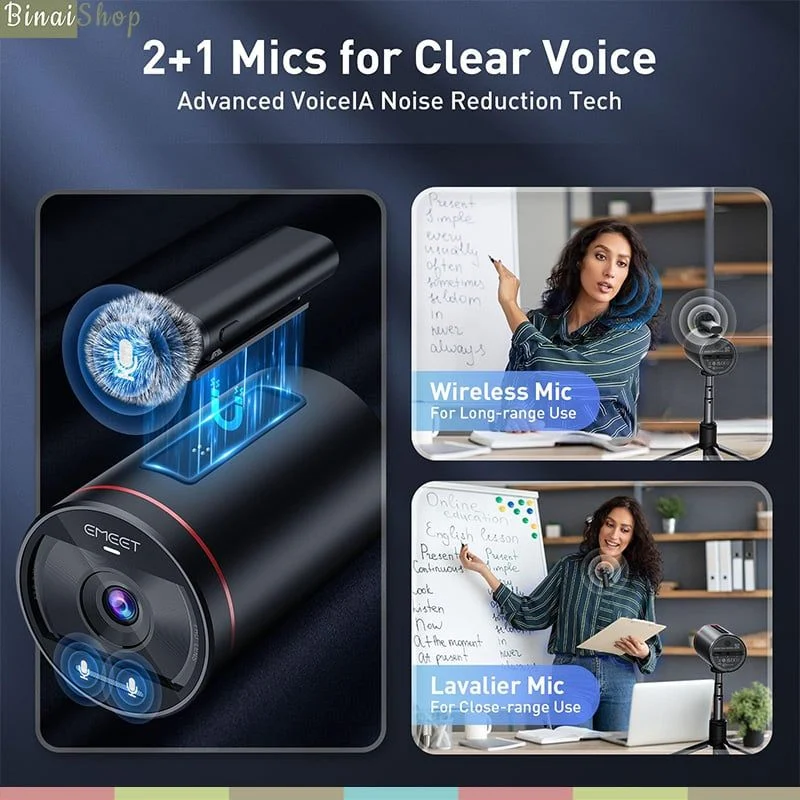 ✨Emeet Streamcam One (Gen 2) - Webcam LiveStream Không Dây, Kết Nối Wifi, Micro Từ Tính Kép, Thời Lượng Pin 8 Giờ - Hàng chính hãng