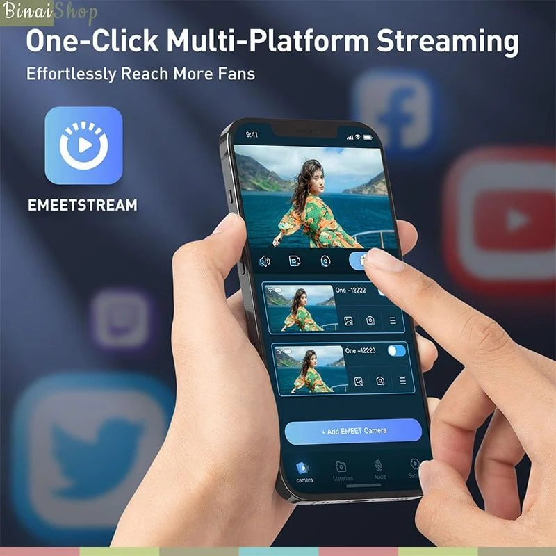 - Tải phần mềm EMEETSTREAM để điều chỉnh các chế độ phóng to/thu nhỏ màn hình, chuyển đổi giữa các camera, điều chình quy trình phát trực tiếp.