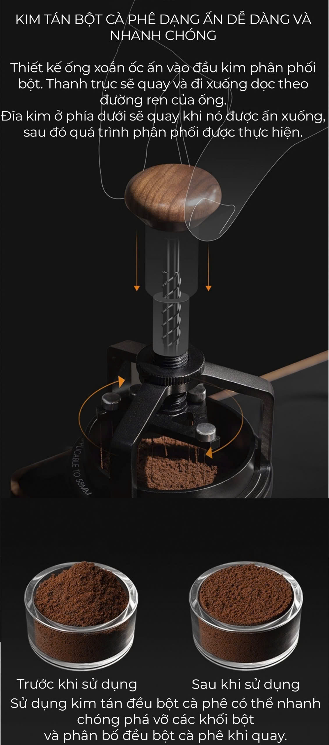 KIM TÁN ĐỀU BỘT CÀ PHÊ ESPRESSO ️Tránh tình trạng vón cục cà phê bên trong basket. ️Chất liệu: Inox 304.  Bên cạnh tầm quan trọng không thể thiếu của Tamper và Tamper OCD trong
