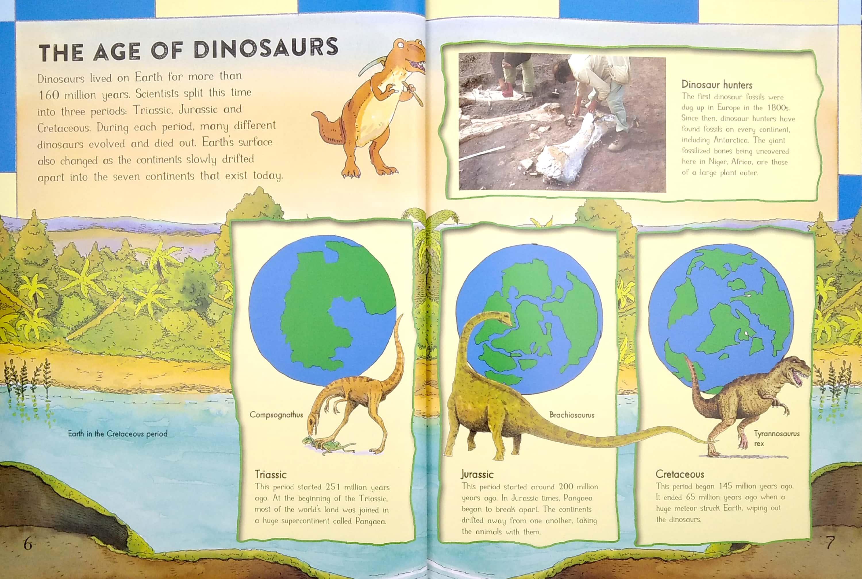 An adorable dinosaur-shaped bookmark takes readers on a journey around the globe, helping them identify different species of dinosaur in an absorbing look-and-find game. In addition to the colourful maps showing the world's continents, superb full-page illustrations take readers deeper into the different habitats of the prehistoric world to show how and where dinosaurs and other prehistoric creatures lived.