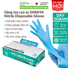 ✨Găng tay cao su Saraya Nitrile Loại Dày 5Gram Không Bột, dùng trong chế biến thực phẩm, làm đẹp, vệ sinh - 100 cái/hộp