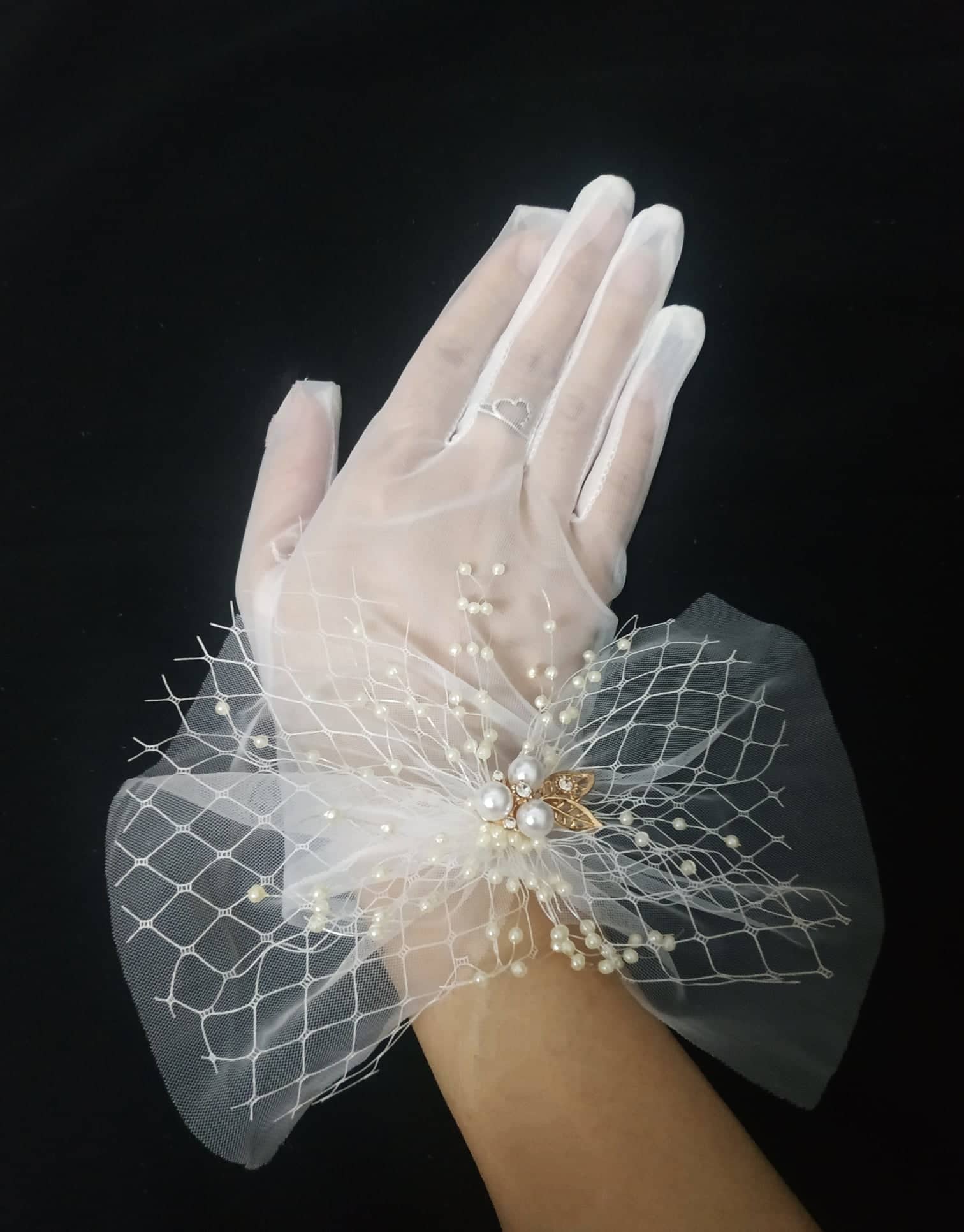 ✨Găng tay trong suốt đính ren lưới, ngọc trai cho Cô dâu và Dạ hội, đi tiệc, sự kiện, lễ hội, chụp ảnh MS: 43854