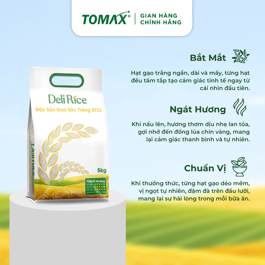 ✨Gạo hữu cơ ST25 Deli Rice thượng hạng, dẻo thơm, ngon nhất thế giới - túi 5kg - TOMAX