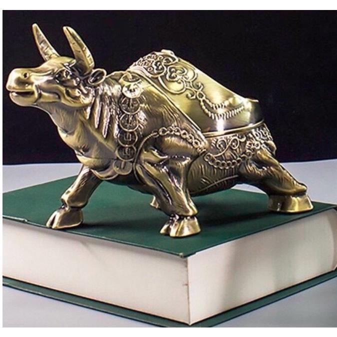 ên sản phẩm : Gạt tàn Trâu đồng Kích thước sản phẩm: 10cm×13cm×21cm Chất liệu: Hợp kim kẽm Trọng lượng sản phẩm: 500 GRAM Màu sắc: Đồng Giả Cổ và Trắng Vàng Tính năng: -