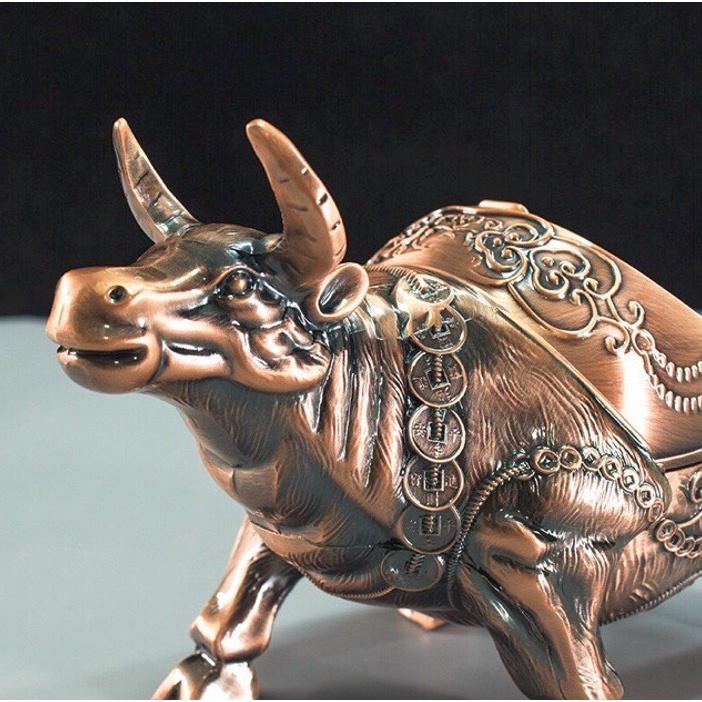 Gạt tàn thuốc linh vật Trâu phong thủy có nắp kéo đậy kín độc đáo GTT89 | Quang Duy Plasma