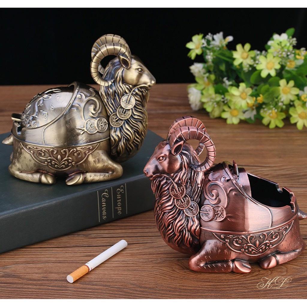 Gạt Tàn Thuốc bằng kim loại HÌNH DÊ Hoạ tiết chú DÊ ngộ nghĩnh Kích thước cao 15x9.13,5 cm Màu : Đồng đỏ