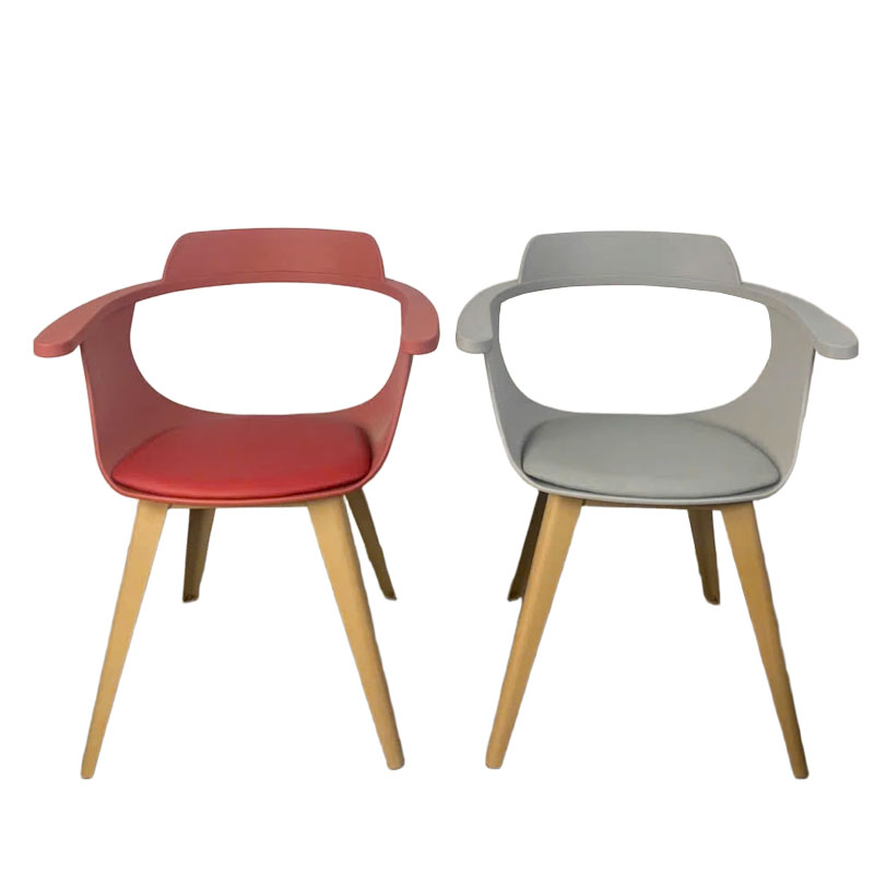 • Chất liệu: Thân nhựa PP có nệm theo màu ghế, chân sắt sơn vân gỗ hiện đại