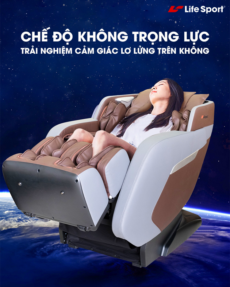 Không trọng lực là chế độ cho phép người dùng ngả người thư giãn tuyệt đối. Phần lưng ghế ngả ra. Đồng thời giúp tản đều áp lực này cho cả cơ thể, giảm áp lực lên một vị trí nhất định. Từ đó giảm những cơn đau nhức hiệu quả.