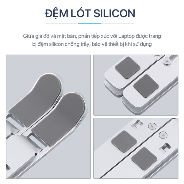 - Chất liệu hợp kim nhôm không gỉ, siêu vững, không gây kích ứng da - Thiết kế siêu mỏng, gọn, nhẹ, dán luôn ở mặt đáy của laptop, khi sử dụng chỉ cần gạt