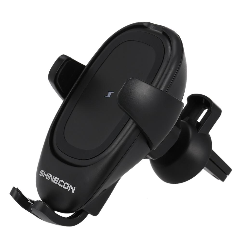 Features: Fast Charging: 5V 2A fast charging, powerful speed makes charging faster, no need to wait too long. Soft Silicone Edge Design: On the main part and phone holder, soft silicone protects the phone from scratching and falling. Omni-directional Clip: With omni-directional clip, suitable for all kinds of car air outlets, you can adjust the angle as you need to match your car perfectly and firmly. Easy To Install: Easy to install and use, no need to connect mobile phones. With an air outlet clip, you can directly clip on air outlet. Single-hand Operation: With a single hand, you can operate the charger. It will not block your sight, which makes driving much safer. Note: The AC adapter is not included, please buy separately or use the mobile phone original adapter. All devices must be Qi standard. Specifications: Brand Name: SHINECON Model Number: SC-W02 Input Power: DC 5V2A Output Power: DC 5V1A Transmitting Distance: 8mm Conversion Efficiency: 76% Support Wireless Charging Standards: Qi Standard Charging Cable Interface: Micro USB Material: ABS Color: Black Item Size: Approx. 1079873mm/4.213.852.87in Item Weight: 92.5g/3.26oz Package Size: 16.012.07.5cm/6.294.722.95in Package Weight: 217g/7.66oz Package List: 1 Wireless Car Charger 1 Micro USB Cable 1 Chinese-English User Manual