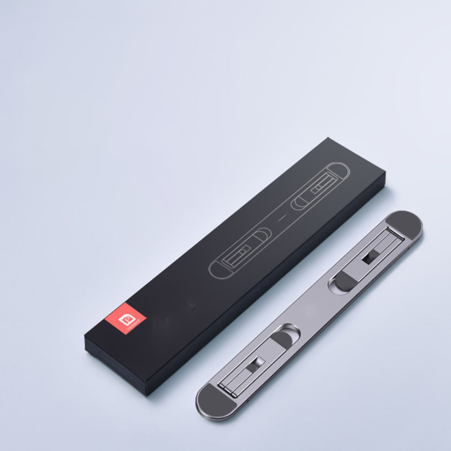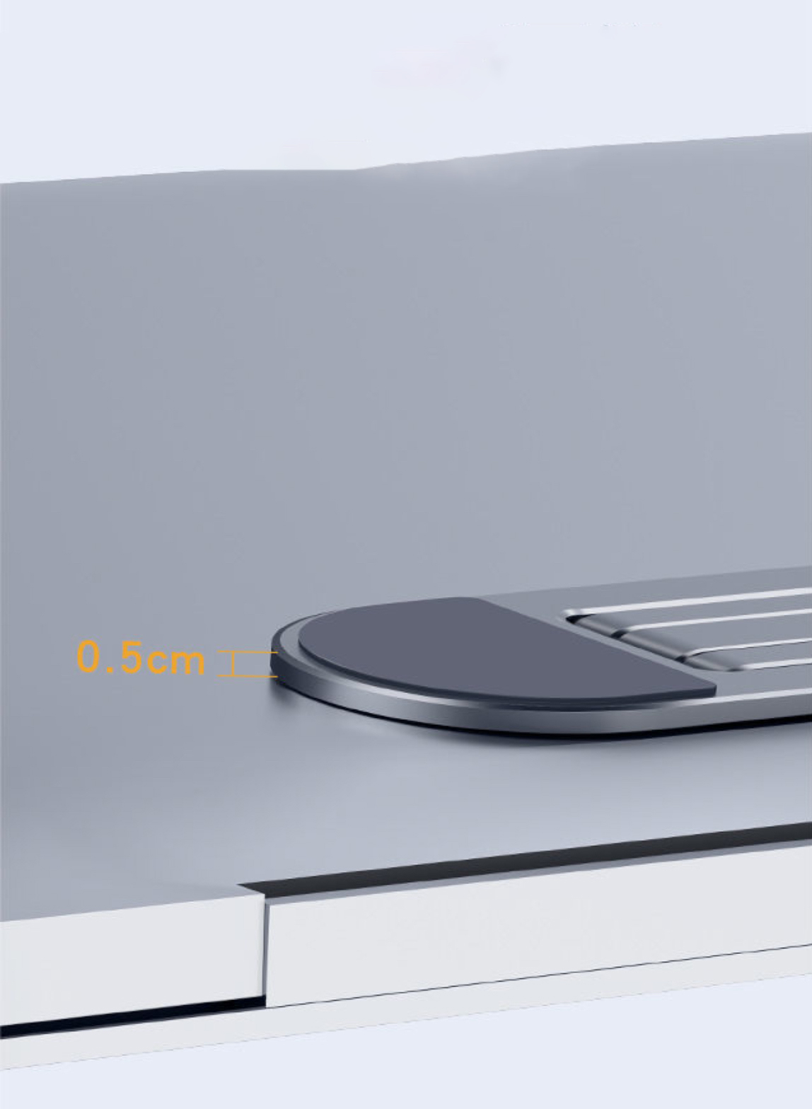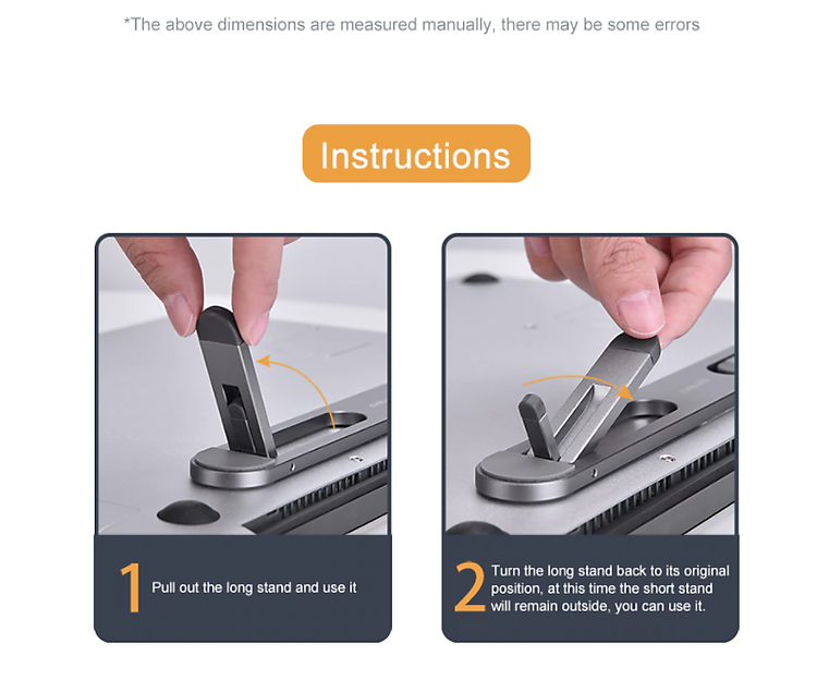 - Chất liệu hợp kim nhôm không gỉ, siêu vững, không gây kích ứng da - Thiết kế siêu mỏng, gọn, nhẹ, dán luôn ở mặt đáy của laptop, khi sử dụng chỉ cần gạt