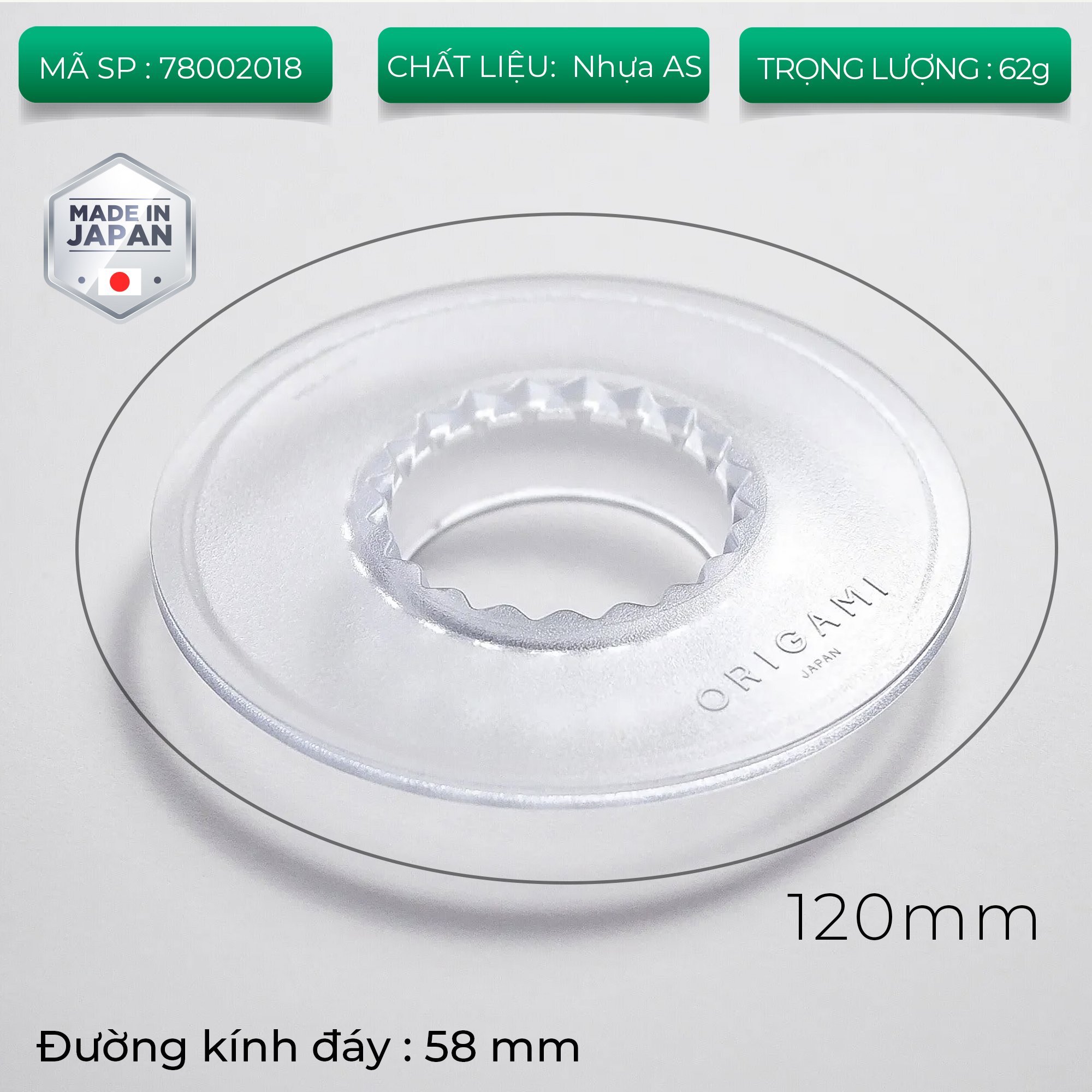 - Có tạo rãnh khớp với phễu: Tăng cường độ cân bằng của phễu khi pha cà phê (Khác với đế gỗ Origami không có rãnh) THÔNG TIN KỸ THUẬT ĐẾ NHỰA ORIGAMI CHÍNH HÃNG Thương hiệu: Chất liệu: Nhựa AS Resin Kích thước: Đường kính ngoài: 120mm – Đường kính lỗ trong: 50mm – Dày 20mm Trọng lượng: 35g NOTE: Sản phẩm không tương thích sử dụng với máy rửa chén. Với sản phẩm đế đỡ gỗ, bạn nên sử dụng bọt biển hoặc khăn mềm thay vì bàn chải/cọ cứng để vệ sinh. Không nên làm sạch bằng cách ngâm nước hoặc nước nóng. Sau khi làm sạch, hãy chú ý lau khô và bảo quản đế ở nơi khô thoáng bạn nhé!