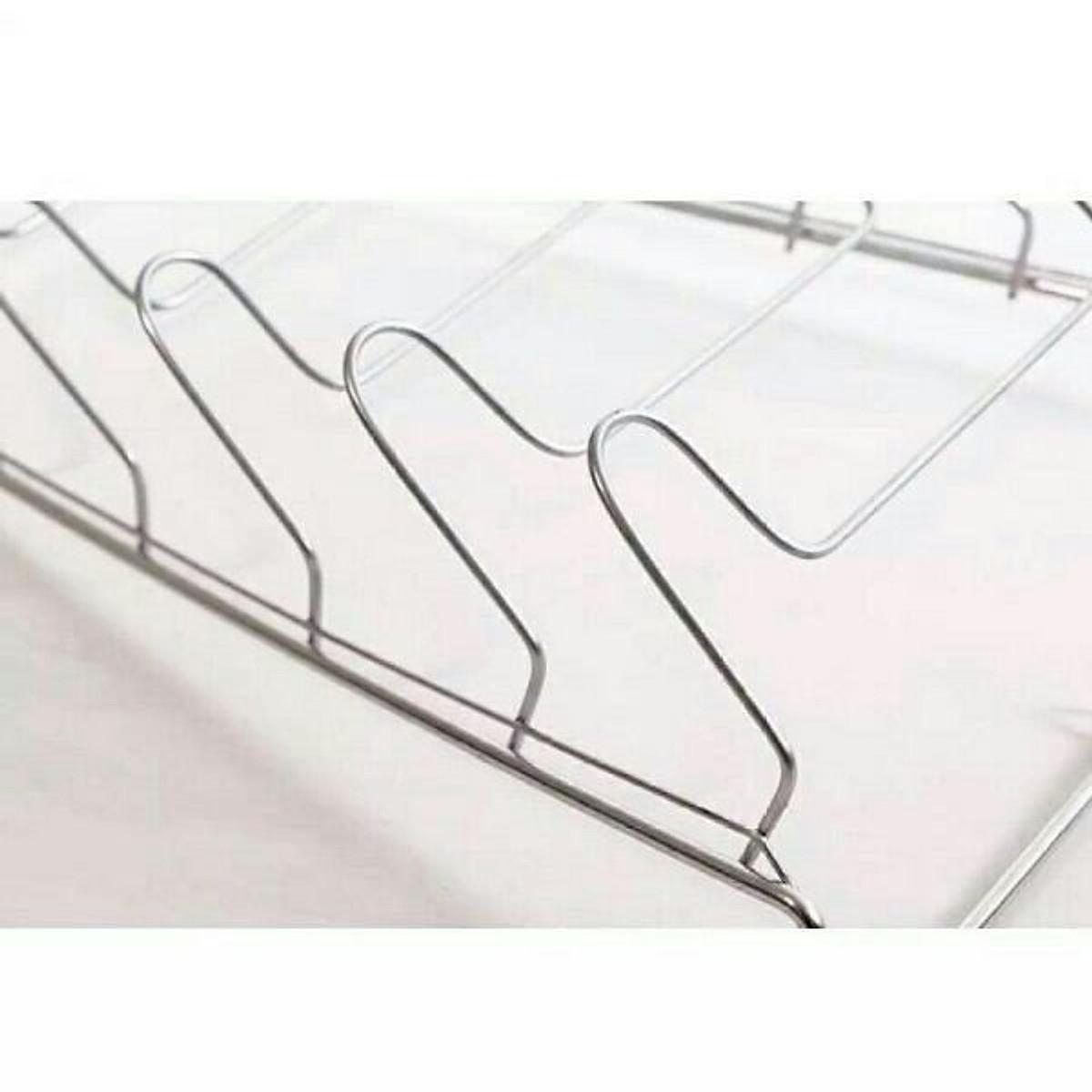 Giá để bát đĩa bằng inox hai tầng cung cấp nhiều không gian thoát nước mà không chiếm bồn rửa, nhờ vào dung tích lớn nhưng diện tích nhỏ. Thanh đỡ ly rượu vang sáng