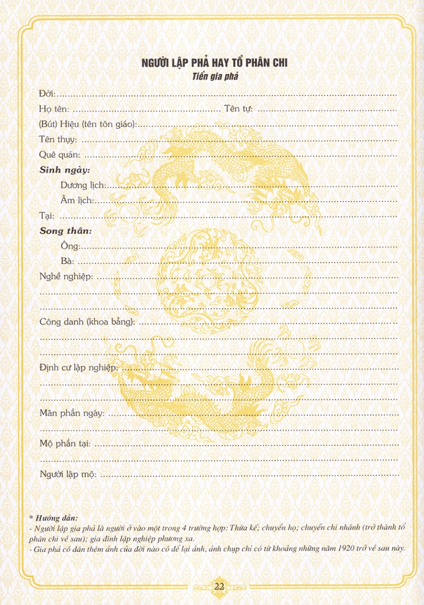 Ngày nay, việc viết gia phả để ghi chép lại những điều cần nhớ về cội nguồn của từng dòng tộc đã trở nên khá phổ biến. Công việc đó đòi hỏi phải mang tính hệ thống, vì thế người biên soạn cuốn sách này đã cố gắng sưu tầm, biên soạn chủ yếu dựa và một số tài liệu hiện hành nhắm mục đích giúp bạn đọc dễ hiểu, dễ làm theo.