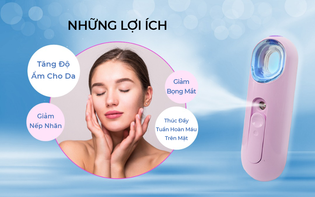 Một số ưu điểm đặc biệt của máy xông hơi mặt mini: - Máy xông hơi mặt ion âm giúp các lỗ chân lông trên làn da mặt dãn ra và sau khi đã xông