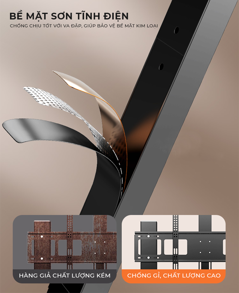 Giá treo tivi thép sơn tĩnh điện từ 55-75 inch tải trọng đến 200kg xoay, điều chỉnh góc xem