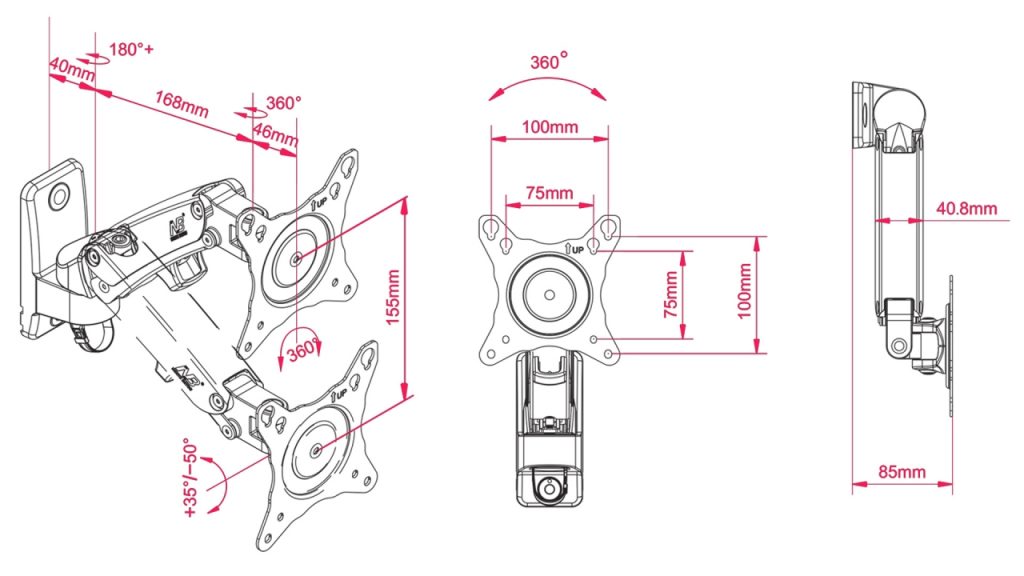 Hãng sản xuất: North Bayou Phù hợp với màn hình từ 17-27 inch Tải trọng: 7kg Xoay: 360 ° Qoay: 180 ° + Góc nghiêng từ +35° tới -50 ° Đóng gói: 39 x 28,5