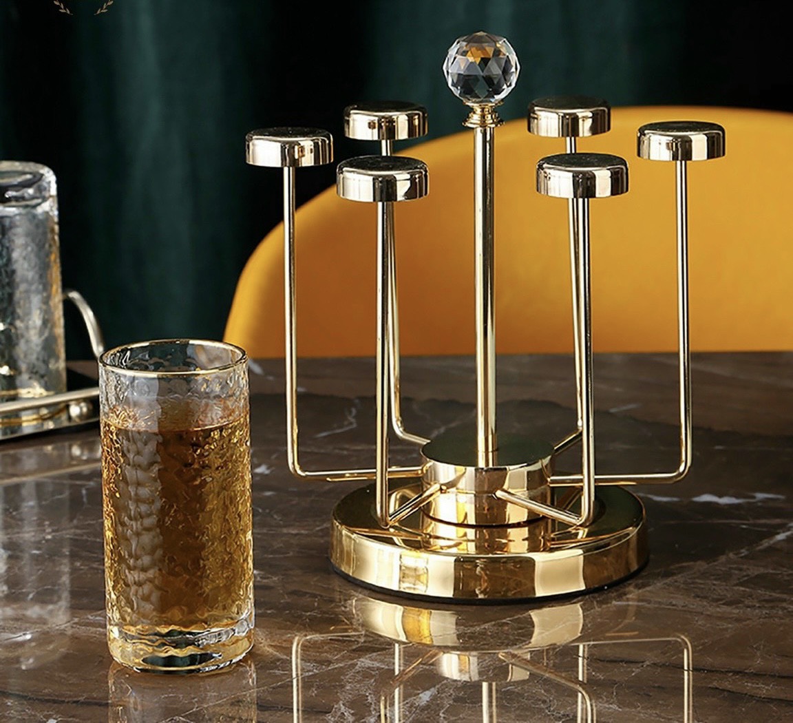 Giá cắm 6 chiếc cốc dạng gọn (CL95965) Giá có khay hứng nước Chất liệu sắt sơn tĩnh điện cao cấp màu vàng cực sang chảnh Dễ vệ sinh, không bị hoen rỉ Kiểu dáng