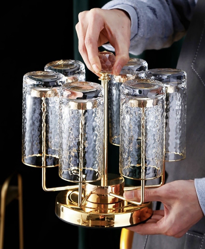 Giá úp cốc xoay , khay gương úp cốc mạ vàng đẹp sang bày bàn, trang trí Phòng khách cho mọi nhà