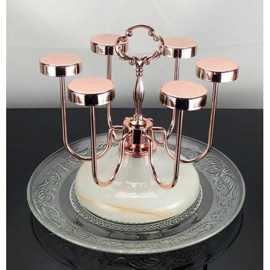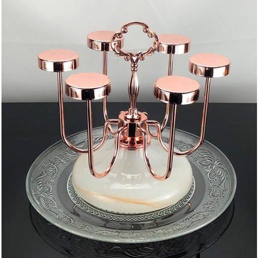 Giá úp cốc 6 chiếc trụ inox màu vàng hồng đế đá Giá cắm 6 chiếc cốc dạng gọn Giá có khay hứng nước Chất liệu sắt sơn tĩnh điện cao cấp màu vàng cực