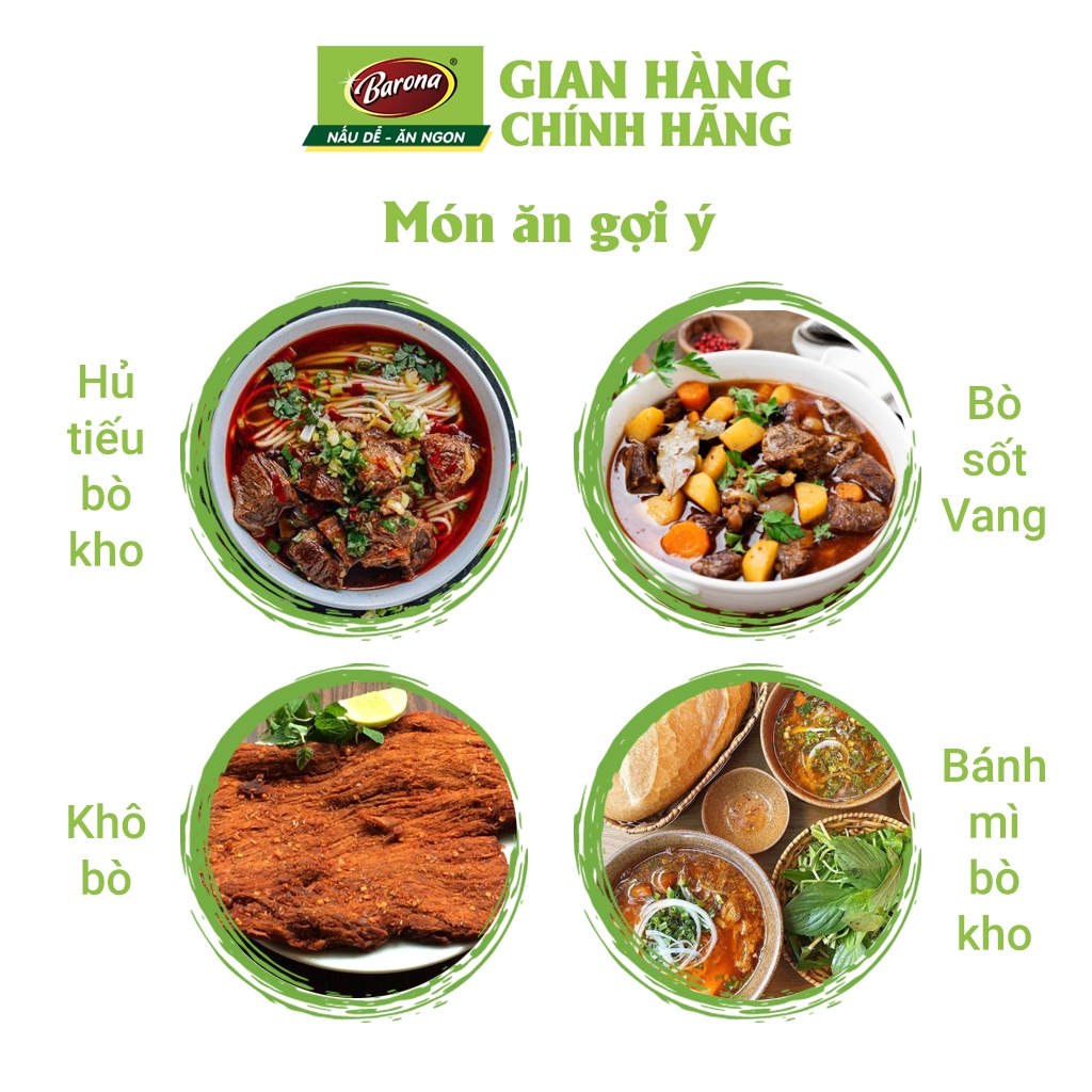 - 1 gói Xốt gia vị hoàn chỉnh Barona - Bò Kho/ Xốt Vang