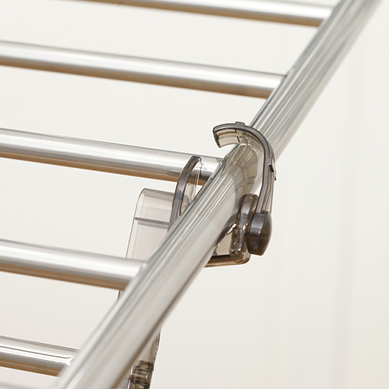 Sản phẩm tích hợp đầy đủ cả chức năng phơi và giá phơi đỡ đồ cố định. Khi giá phơi mở ra, giá đỡ được hỗ trợ tự động trên giá phơi. Thanh phơi liên kết chắc chắn, cố định. Giàn phơi giúp bạn phơi quần áo được nhiều hơn bằng cách sử dụng kẹp quần áo (Kẹp quần áo lên trên, kéo đồ phơi xuống bên dưới).