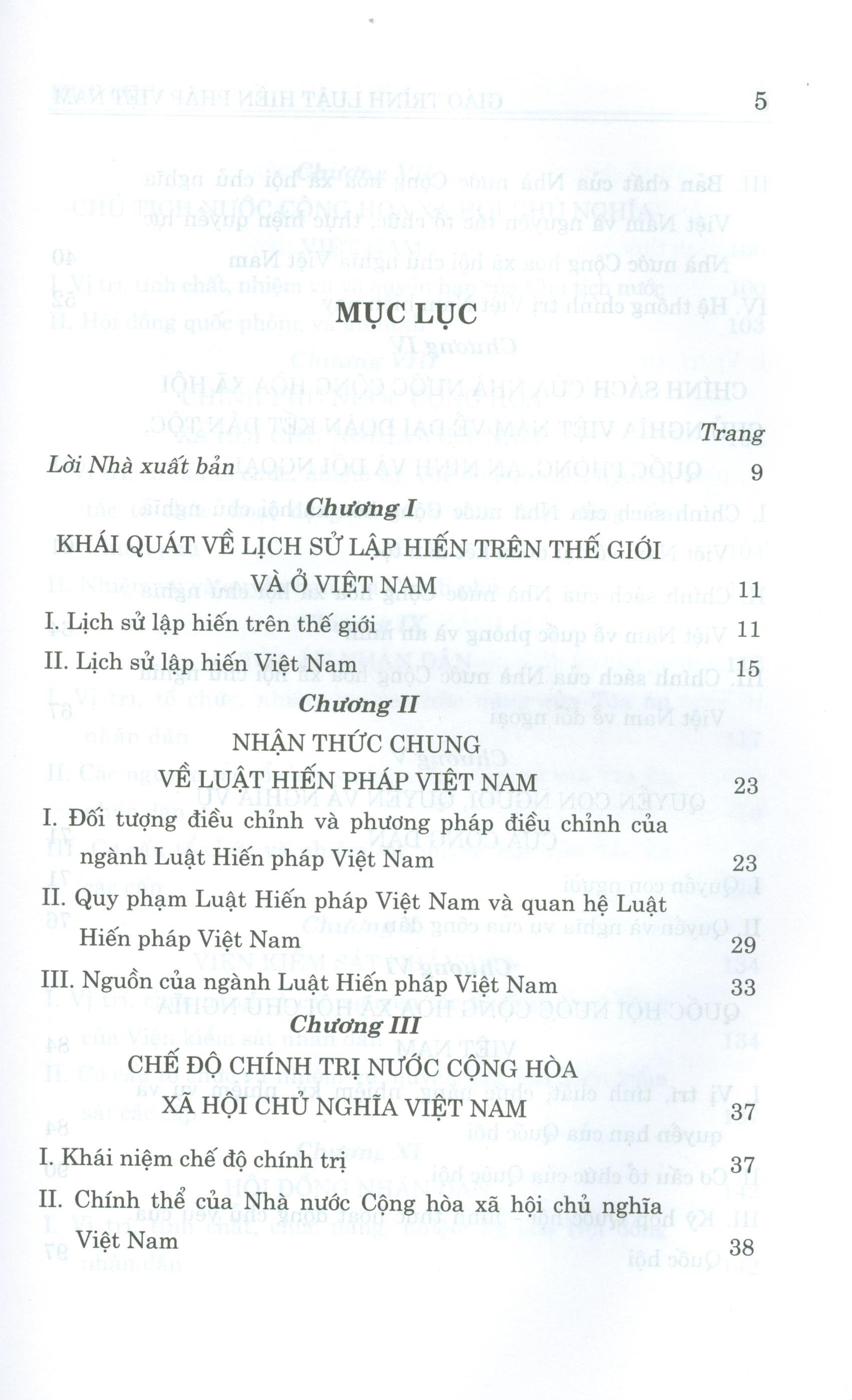 Mục lục: Chương 1: Những vấn đề cơ bản về luật hiến pháp. Chương 2: Hiến pháp và lịch sử lập hiến Việt Nam. Chương 3: Chế độ chính trị. Chương 4: Chế độ kinh