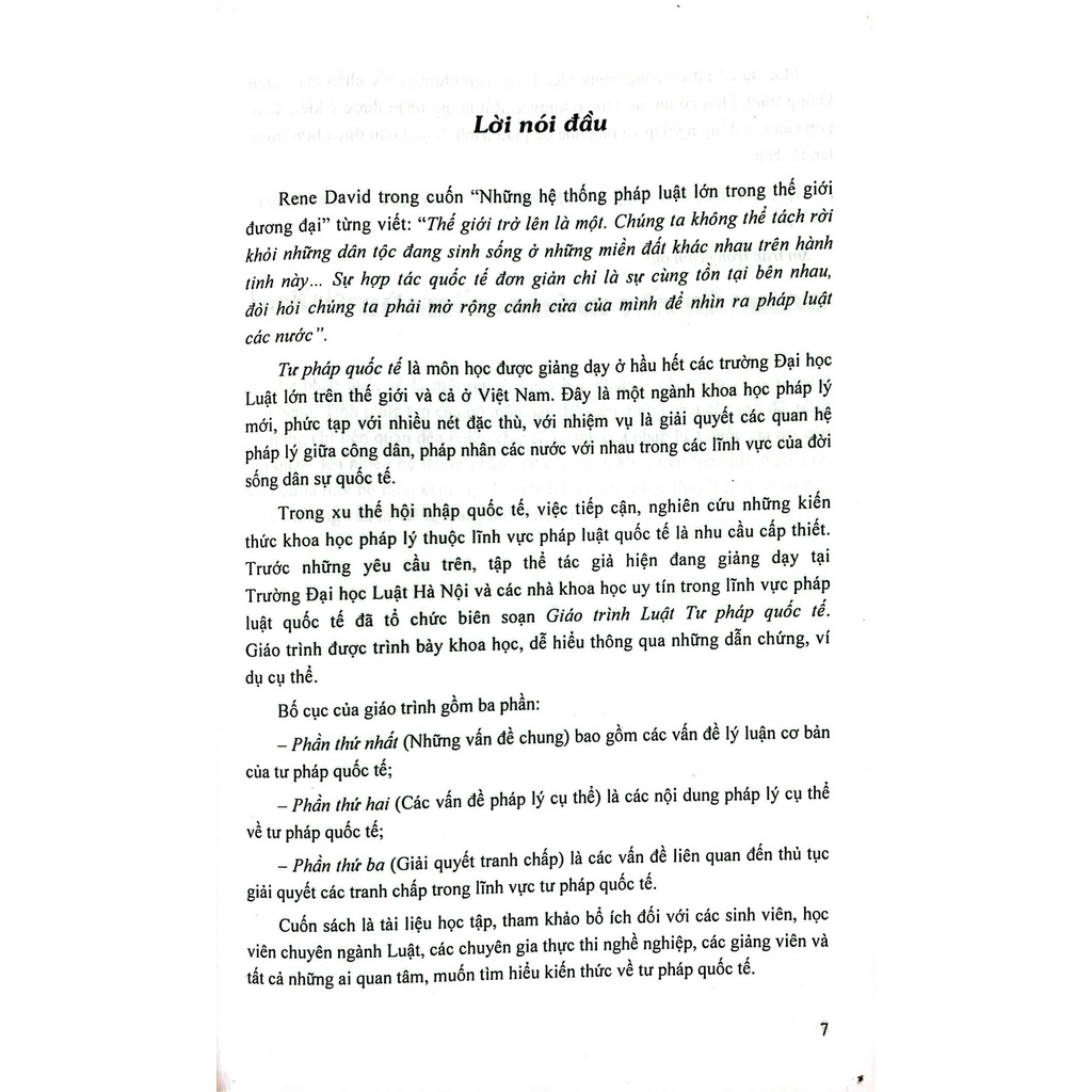Tư pháp quốc tế là môn khoa học pháp lý chuyên ngành được đưa vào giảng dạy dụng rãi trong các trường đại học đào tạo luật trên thế giới cũng như ở Việt Nam. Nhằm phục vụ công tác giảng dạy và học tập môn Tư pháp quốc tế, ngay từ những năm 90 của thế kỷ trước, Trường Đại học Luật Hà Nội đã xuất bản và tái bản nhiều lần Giáo trình Tư pháp quốc tế. Các giáo trình Tư pháp quốc tế này đã nhận được sự quan tâm đặc biệt của bạn đọc trên cả nước, góp phần làm phong phú thêm hệ thống lý luận về Tư pháp quốc tế của Việt Nam.