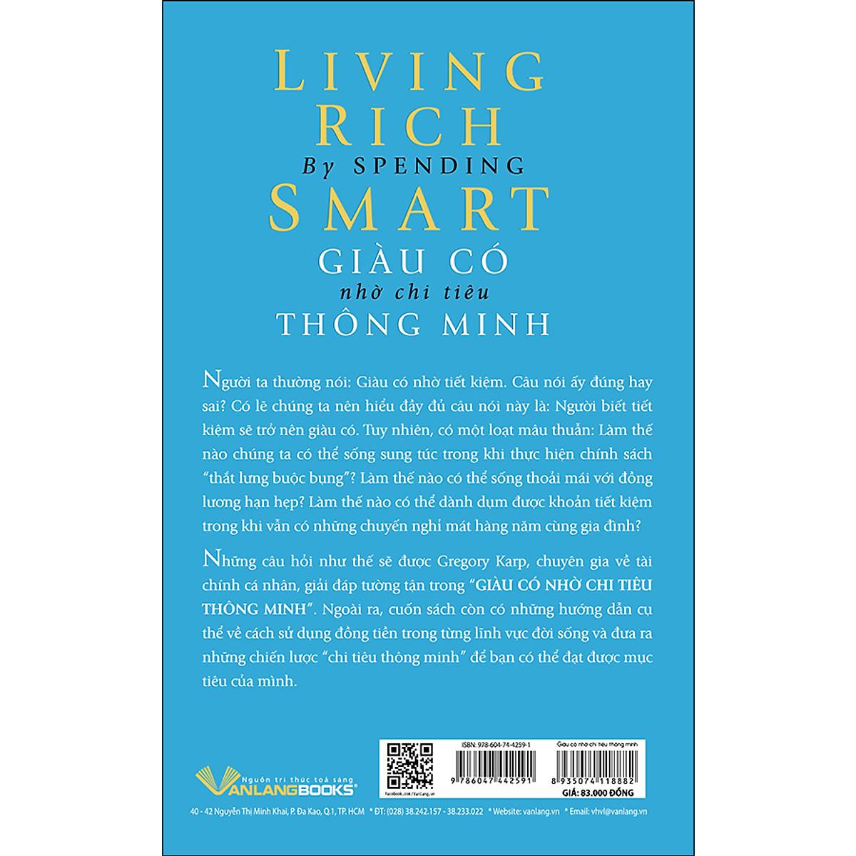 Những câu hỏi như thế sẽ được Gregory Karp, chuyên gia về tài chính cá nhân, giải đáp tường tận trong “Giàu có nhờ chi tiêu thông minh”. Ngoài ra, cuốn sách còn có những hướng dẫn cụ thể về cách sử dụng đồng tiền trong từng lĩnh vực đời sống và đưa ra những chiến lược “chi tiêu thông minh” để bạn có thể đạt được mục tiêu của mình.