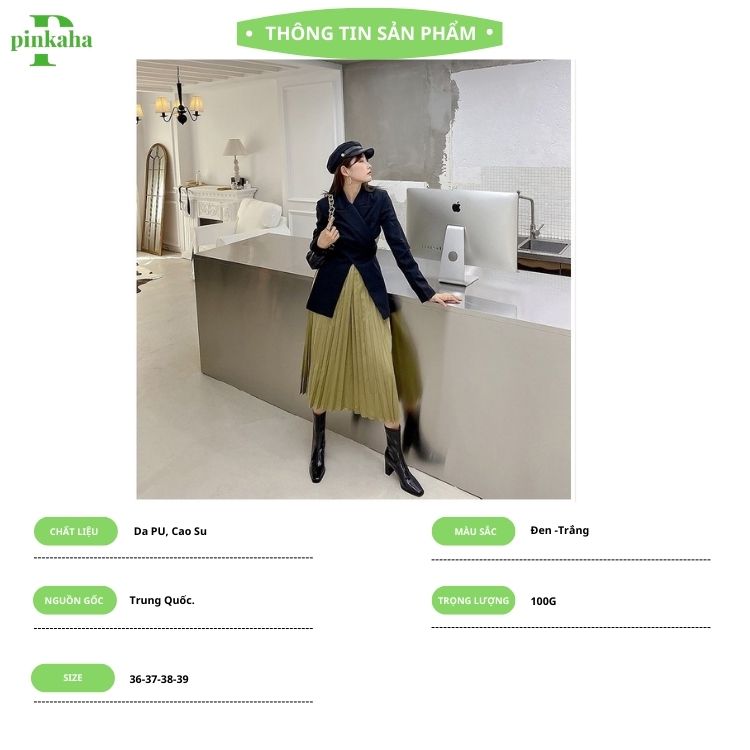 - E này dáng lửng tạo hiệu ứng chân dài, đã thế gót lại còn cao 8 phân, gót vuông dễ đi mà chắc chân