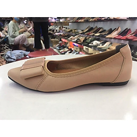 Giày búp bê da thật đế bệt siêu êm gắn nơ Pixie vẻ đẹp nữ tính thanh lịch