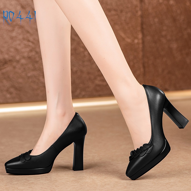 Giày cao gót nữ đẹp đế vuông 8 phân hàng hiệu rosata màu đen ro322